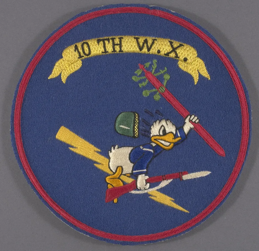ディズニー社の第2次大戦への貢献はアニメーション映像にとどまらず部隊の標章のデザインでも活躍しました。標章とはよく軍の兵士たちが上着の肩につけているキャラクターと兵器などが描かれたパッチや、航空機に描かれた一部のノーズアートなどです。これらもディズニー社のデザインのものがありました。