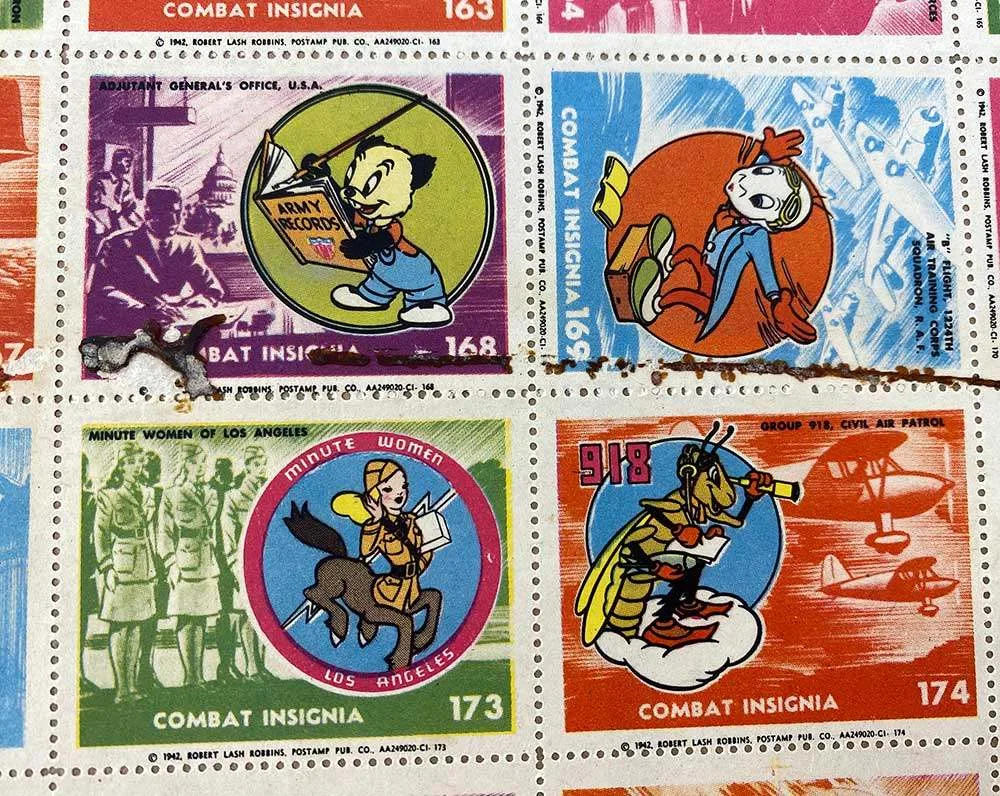 ディズニー社による軍のための部隊標章のデザインは広く人気を獲得しました。そのため1942年2月のロサンゼルスエグザミナー誌は新たにこれらの部隊標章をポスタースタンプにしています。そして児童用にそれらのスタンプを集めて貼り付けるアルバムを企画しました。。2つ目のアルバムは3月に発行されエグザミナー誌には多くの広告が設けられた。このシリーズではカラーのスタンプを250個以上発行している。